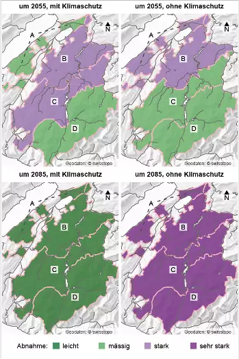 Winterniederschläge im Kanton Freiburg in der nahen und fernen Zukunft mit begrenztem und ohne Klimaschutz