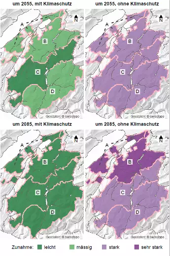 Sommerniederschläge im Kanton Freiburg in der nahen und fernen Zukunft mit begrenztem und ohne Klimaschutz